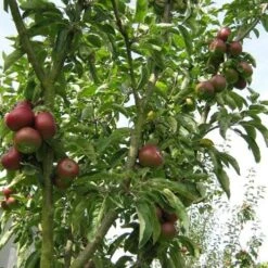 Bred in Japan in 1930, dual-purpose Apple Crispin is also known as Mutsu. One of its parents was Golden Delicious, which Crispin resembles in appearance and flavour, with large, yellow apples, crisp, juicy, creamy-white flesh and sweet-sharp flavour. Itβs also suitable for juicing and for baking, slices keeping their shape in tarts. Very vigorous, spreading tree; a heavy cropper. Spur-bearer, producing spurs freely. Very hardy, suitable for colder areas. Prone to scab. Triploid β must be planted with two different varieties if all three are to bear.
