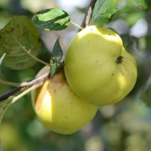An Irish heritage dessert variety, recorded in Co. Derry at the beginning of the 19th century, and once widely grown and appreciated in Northern Ireland. Also known as May Bloom. The fruit is medium-sized and round, with one side slightly flattened, yellow-green with an orange-red blush on one side; the flesh is crisp, white, juicy, sweet and well flavoured. Reliable, healthy tree, resistant to scab, and with lovely pink blossom. Good pollinator.