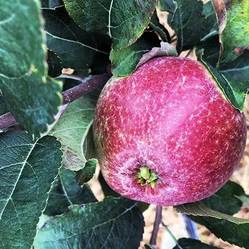 One of the few apples that can be used for a single-varietal cider, Malus domestica Kingston Black was bred in Kingston, Somerset in the 19th century. The fruit is comparatively small, almost completely flushed a very deep maroon-red; it produces an aromatic, well-balanced, bitter-sharp juice with a lovely, distinctive flavour. The tree is a light, not always reliable, cropper, slow to come into bearing, and can be susceptible to scab and canker, but is nevertheless popular with cider-makers for its exceptionally high-quality juice. A spur-bearer, cider apple Kingston Black is good for pollinators.
