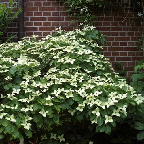 A beautiful, Dutch-bred cultivar of the Chinese dogwood, Cornus kousa var. chinensis China Girl is a small, slow-growing, deciduous tree with tiered branches, giving a graceful, architectural effect even in winter. The deep green, oval leaves turn brilliant shades of red and orange in autumn. In June, especially after a hot preceding summer, the tree is covered with a spectacular display of upward facing flowers, formed of four, creamy-yellow bracts surrounding a green boss of the true flowers. These are followed by bright red, strawberry-like (but inedible) fruits. A lovely tree for the smaller garden, good as a lawn specimen. Best left unpruned, Chinese dogood China Girls holds the RHS Award of Garden Merit.Â