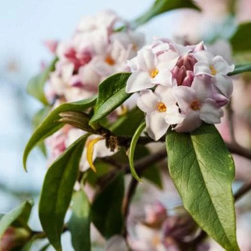 An intensely fragrant shrub which will scent the air for metres round, Daphne bholua Spring Beauty is a medium-sized, slow-growing, evergreen shrub with a slender, upright habit and elliptical, deep green, evergreen leaves. Â Clusters of wonderfully scented flowers, larger than those of most daphnes, open from March; they are a very deep pink in bud and paler pink within, and more may appear occasionally over the rest of the year. Keep pruning to a minimum, and plant where the roots can be shaded. Daphne Spring Beauty is lovely in a winter border, or near the house where the scent can be appreciated, but be aware that all parts of the plant are toxic if eaten, and the sap is an irritant. Not for very cold or exposed gardens.