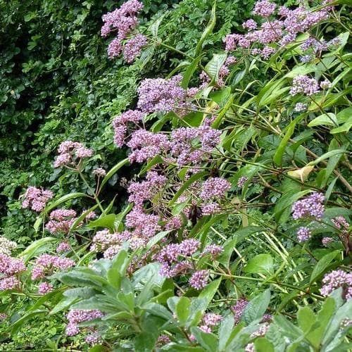 A striking Hydrangea-like evergreen shrub, usually with vivid blue flower heads in late Summer and Autumn, followed by iridescent indigo-blue berries. Like Hydrangeas the flower colour varies with soil pH, blue on acid soils, becoming pinkish-white on alkaline ones. Not very hardy and needs shelter and winter protection in cold areas, otherwise quite easy to grow. Often used in traditional Chinese herbal medicine. Has been used to treat malarial fever.