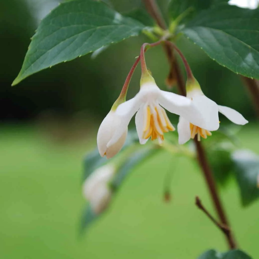 Related to camellias (and our own domestic tea), Stewartia sinensis is a small to medium-sized, deciduous tree with a spreading, open habit, grown for its bark, flowers and autumn colour. The bark is exceptionally beautiful, ‘as smooth as alabaster and the colour of weathered sandstone’, according to Kew curator William Bean, ‘It turns purple, later brown, then peels away in translucent scrolls, exposing the fresh [sand-coloured] inner coating.’ The ovate leaves are deep green, turning reddish-purple in autumn. Single, pure-white, camellia-like flowers with a prominent boss of golden-yellow stamens, very attractive to bees, are borne in midsummer. Chinese stewartia makes a lovely specimen, giving year-round interest. Like all stewartias, it dislikes disturbance.